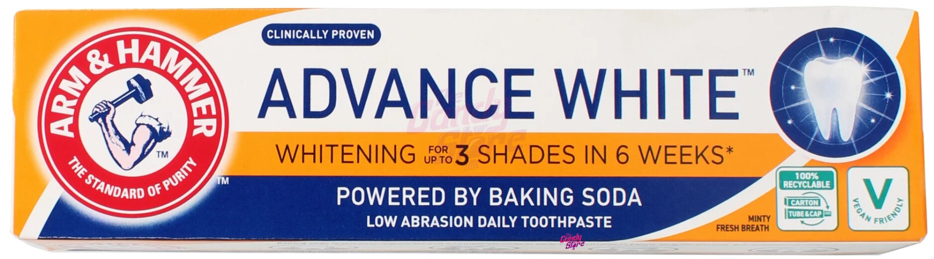 Pitná voda, hydrogenuhličitan sodný, hydrogenovaný škrobový hydrolyzát, hydratovaný oxid křemičitý, glycerin, pyrofosforečnan tetrasodný, aroma, lauroylsarkosinát sodný, sodný sacharin, celulózová guma, laurylsulfát sodný, fluorid sodný, limonen, CI 77891.