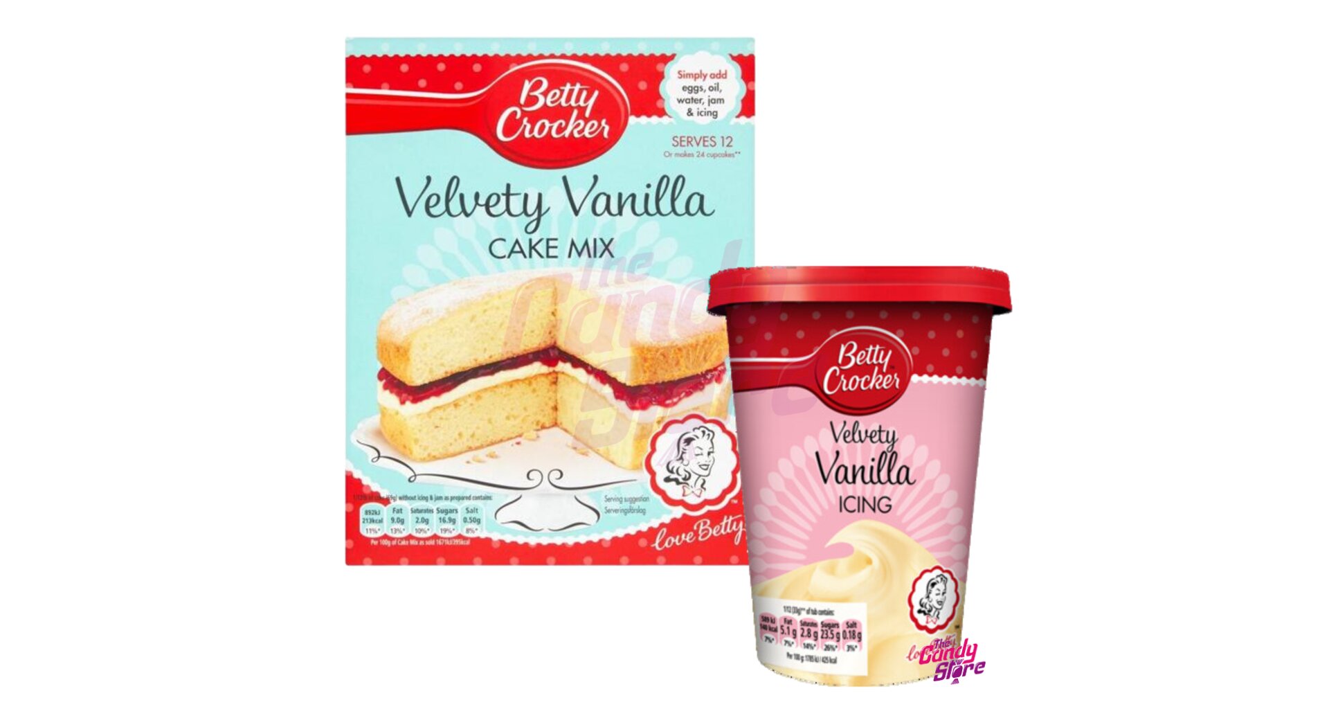 Vyzkoušejte náš super DUO Pack na pečení od Betty Crocker, který se skládá z polevy s vanilkovou příchutí a směsi na přípravu vanilkového dortu.