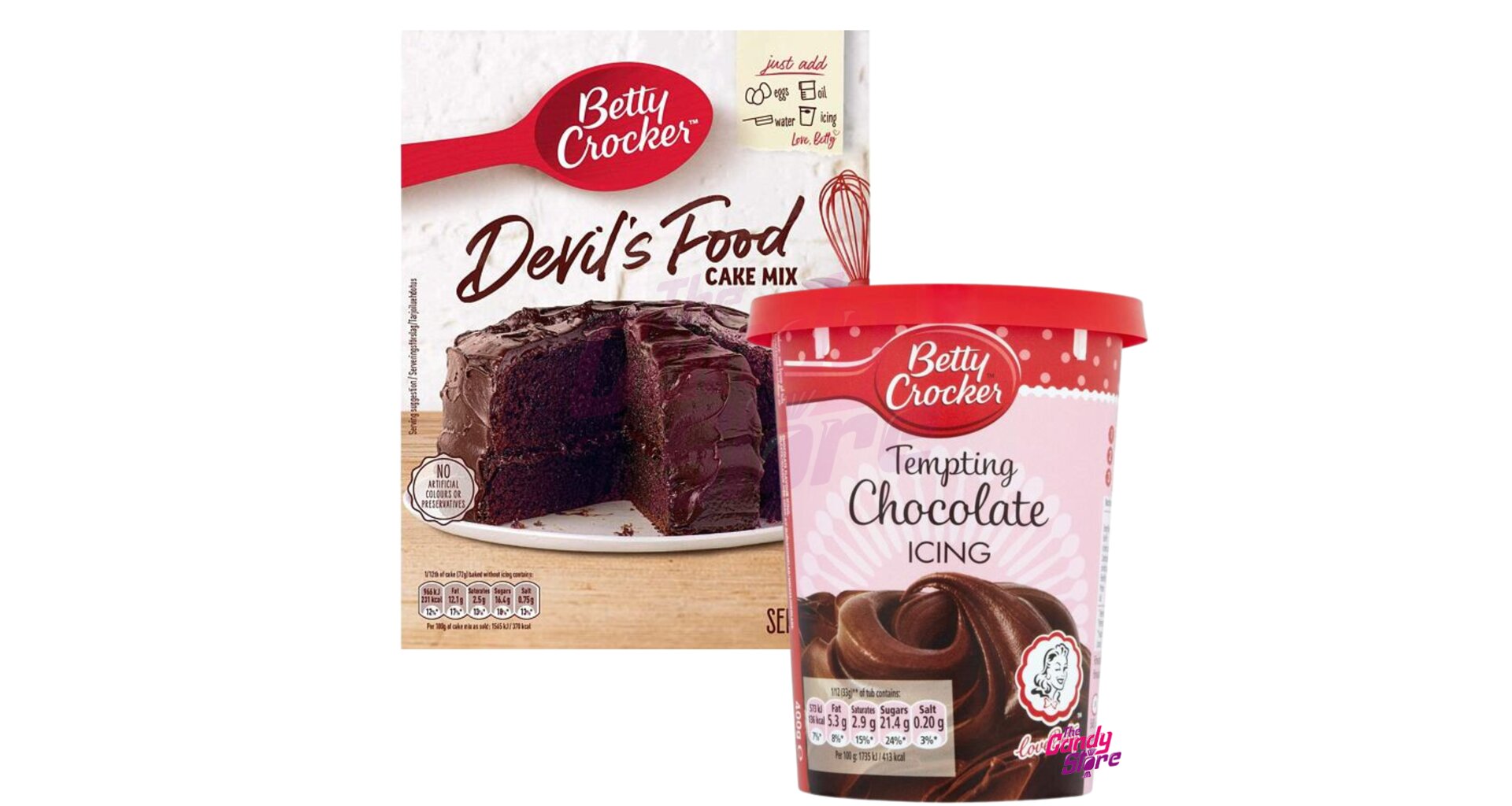 Vyzkoušejte náš super DUO Pack na pečení od Betty Crocker, který se skládá z polevy s čokoládovou příchutí a směsi na přípravu čokoládového dortu.