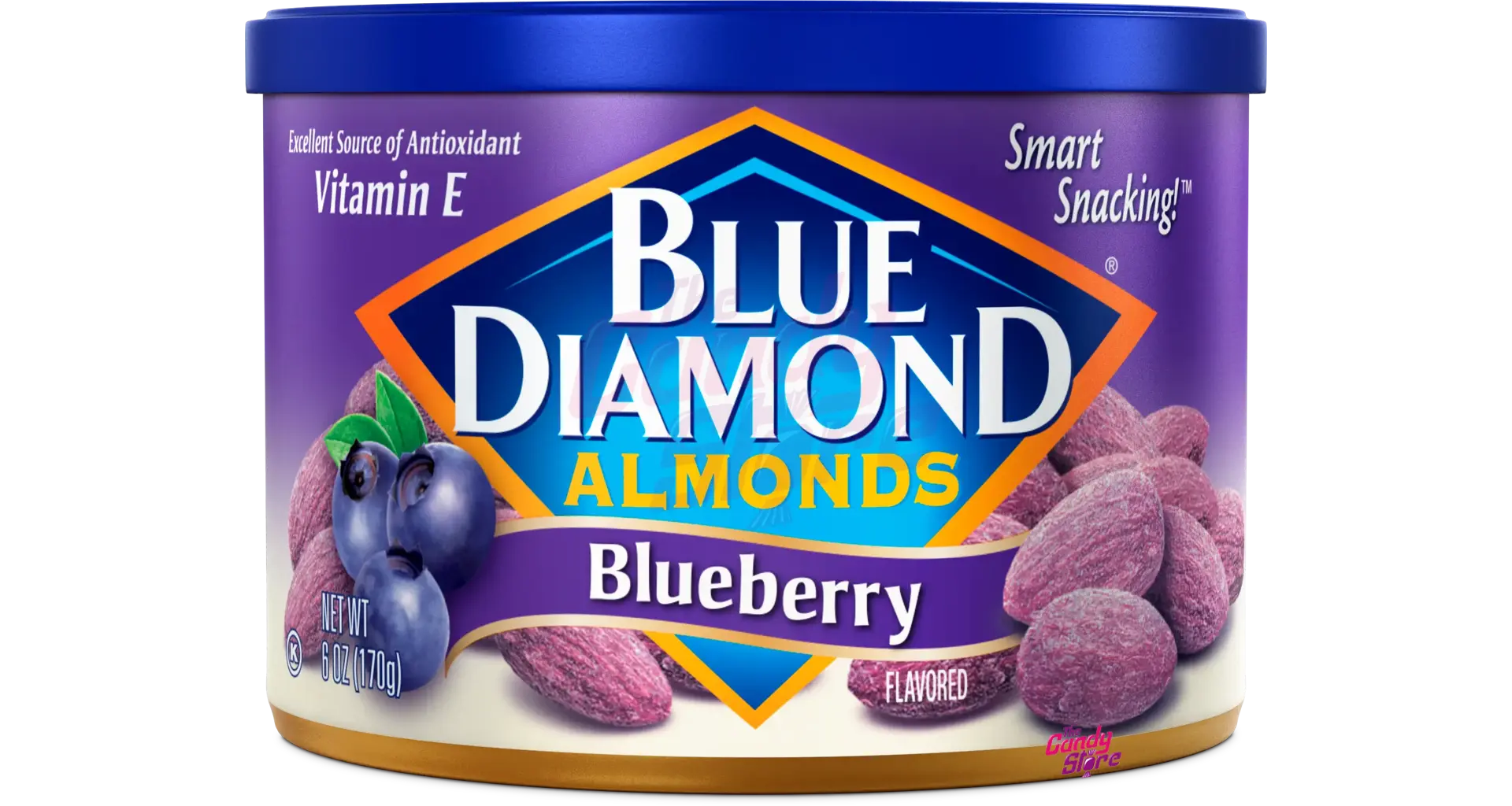 Mandle, cukr, přírodní aroma, maltodextrin, kukuřičný škrob, mořská sůl, borůvková šťáva z koncentrátu, borůvkové pyré, sladidlo: steviol-glykosidy.
