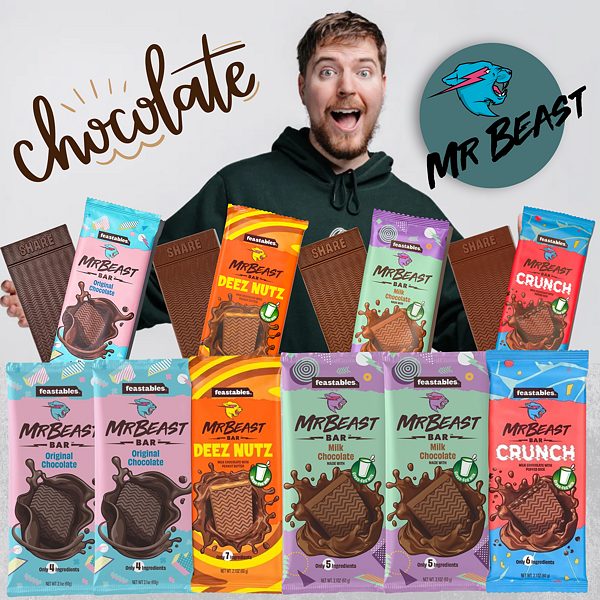 Čokolády jsou vyrobeny z kvalitních ingrediencí, což zajišťuje vynikající chuť a texturu. Podpora charitativních iniciativ: MrBeast je známý svou filantropickou činností a část výtěžku z prodeje Feastables může být věnována na podporu charitativních projektů nebo dobročinných organizací - můžete mít z čokolády dobrý pocit! A to se jen tak neděje ne?