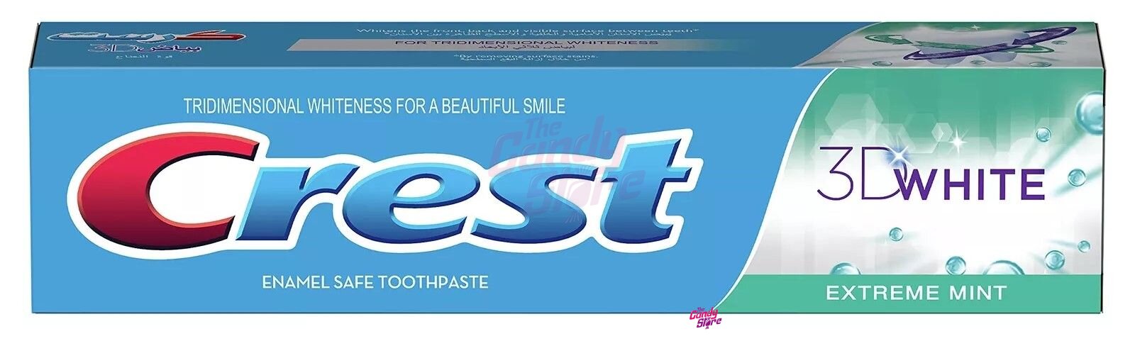 Pitná voda, sorbitol, oxid křemičitý, pyrofosforečnan sodný, laurylsulfát sodný, aroma, celulózová guma, hydroxid sodný, sacharin sodný, fluorid sodný, carbomer, slída, limonen, oxid titaničitý, alkohol, polysorbát 80, Brilantní modř FCF.
