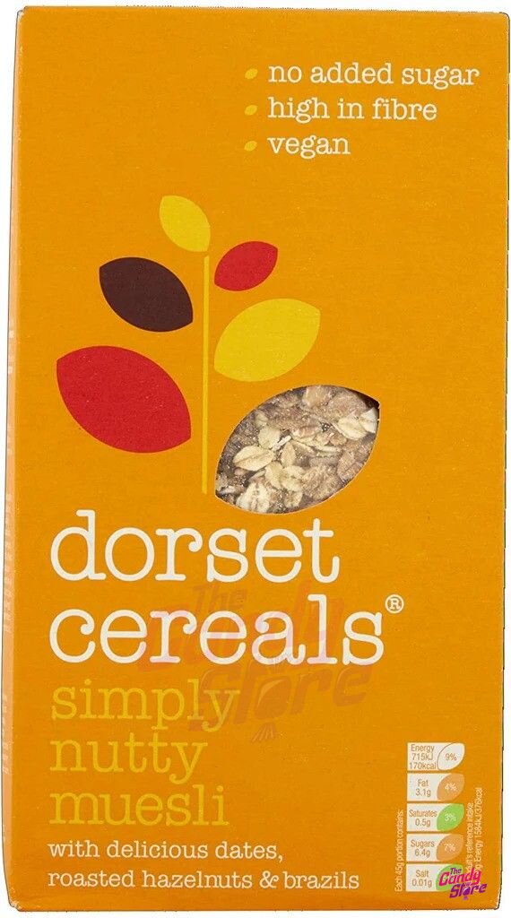 Celozrnné ovesné vločky, nasekané datle 19 %, ječné vločky, celozrnné opečené pšeničné vločky, pšeničné vločky, ořechy (nasekané pražené lískové oříšky 2,5 %, celé mandle 2,5 %, nasekané para ořechy 1,5 %, slunečnicová semínka 2,5 %.