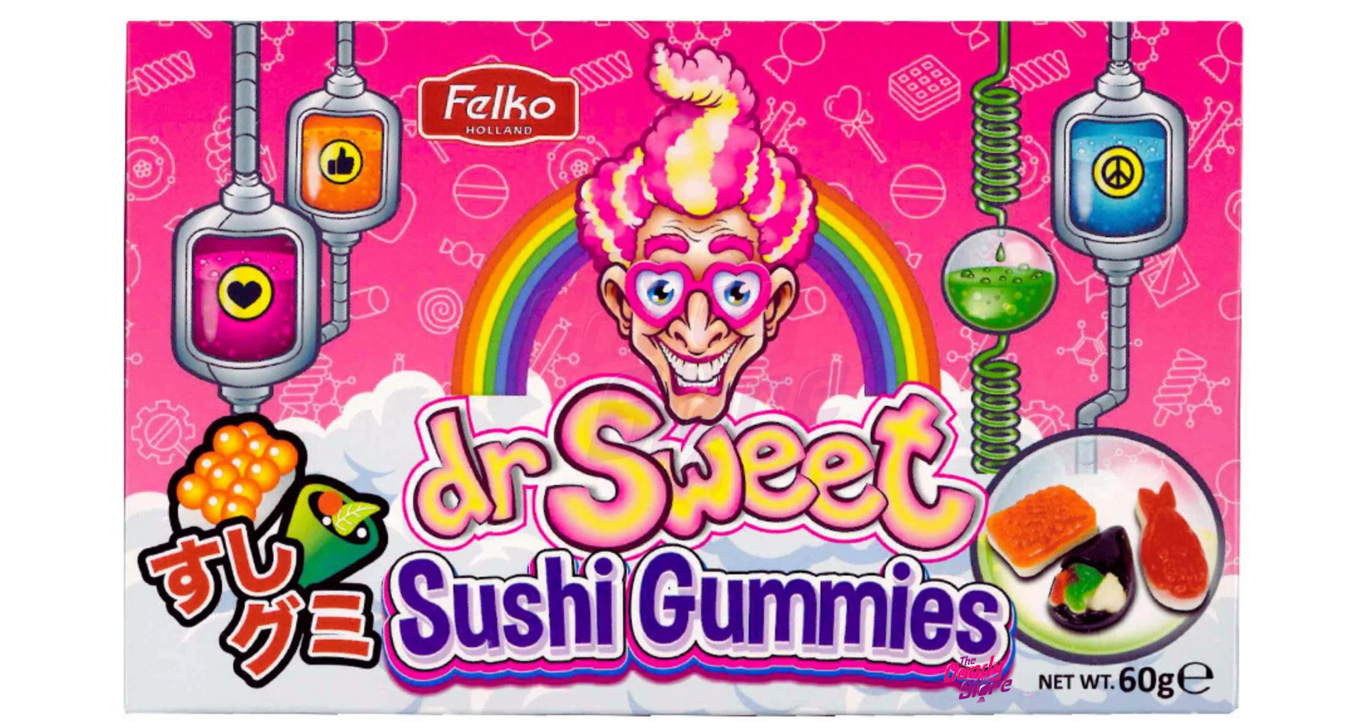 Glukózový sirup, cukr, želírovací látka: želatina; stabilizátor: sorbitol; zahušťovadlo: pektiny; regulátory kyselosti: kyselina citronová, kyselina jablečná, citronany sodné; dextróza, aroma, konzervant: sorban draselný; barviva: kurkumin, kyselina Karmínová, Brilantní modř FCF, měďnaté komplexy chlorofylů a chlorofylinů, betakaroteny.