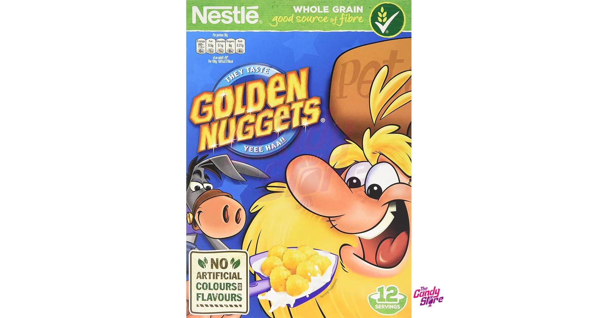 Obilná zrna (celozrnná pšenice (25.8%), pšeničná mouka, celozrnná kukuřičná mouka (11.2%), kukuřičná krupice), cukr, kukuřičný škrob, glukózový sirup, med (2.5%), vitamíny a minerály (vápník, niacin, kyselina pantothenová, železo, vitamín D, vitamín B6, thiamin, riboflavin, kyselina listová), částečně invertovaný hnědý cukr, sůl, palmový olej, barvivo (karoten), antioxidant (tokoferoly), dochucovadlo.