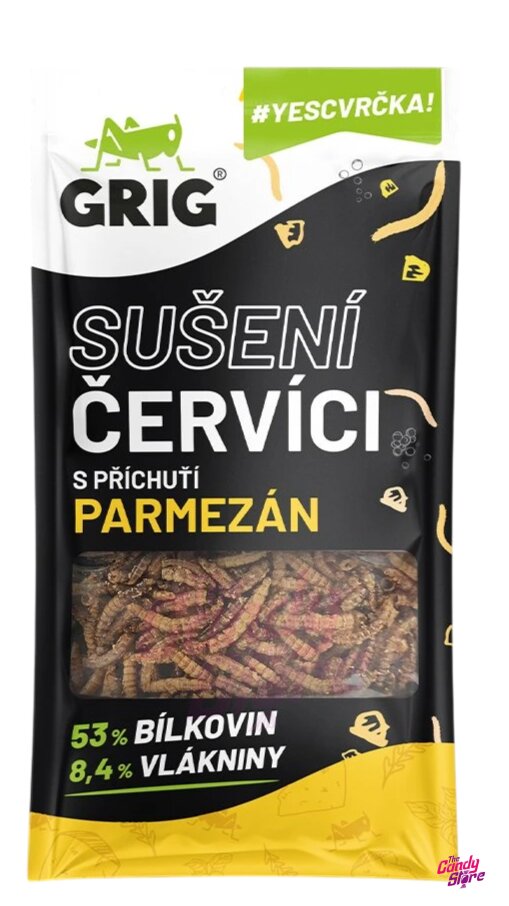 Sušené larvy potemníka moučného 97%, ochucující směs 2% - glukózový sirup, jedlá sůl, kvasničný extrakt, aroma, protispékavá látka: oxid křemičitý; extrakt koření.