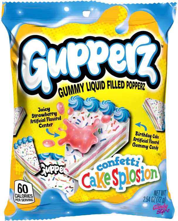 Gupperz želé bonbony ve tvaru a s příchutí narozeninového dortu s jahodovou náplní 72 g