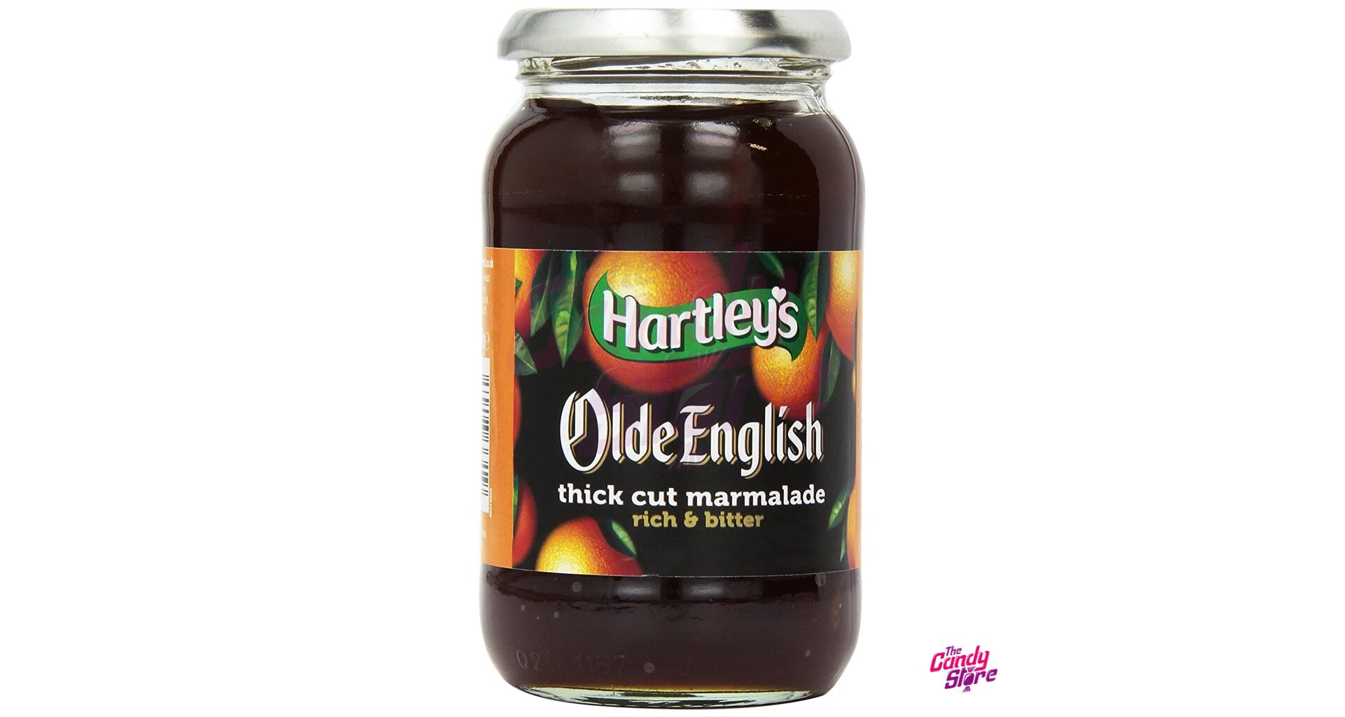 Cukr, pomeranče, pitná voda, regulátor kyselosti: kyselina citronová; želírující látky: pektiny; regulátory kyselosti: citronany sodné; barvivo: karamel; invertní cukrový sirup.