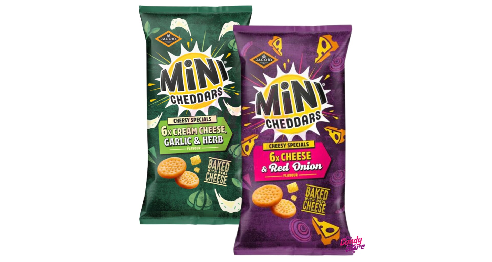 Jacob's krekry s příchutí cheddaru a červené cibulky + krekry s příchutí sýru, česneku a bylinek