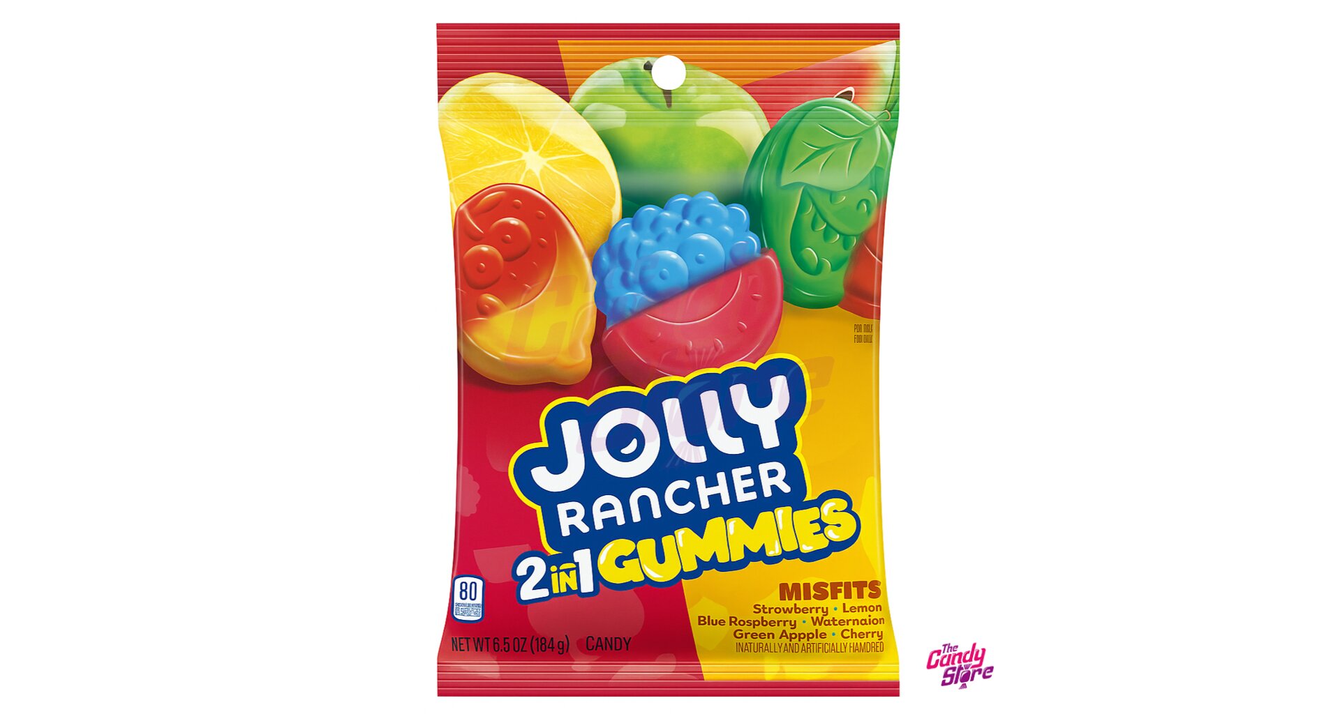 Cukr, kukuřičný sirup, kukuřičný škrob, regulátory kyselosti: kyselina jablečná, citronany sodné; přírodní a umělá aromata, leštící látka: karnaubský vosk; barviva: Červeň Allura AC, Tartrazin, Brilantní modř FCF, Žluť SY.