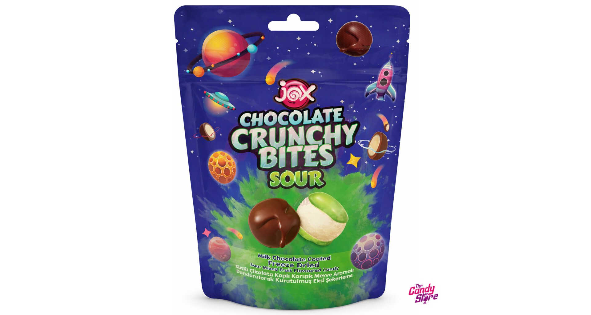 Mléčná čokoláda [cukr, kakaové máslo, plnotučné sušené MLÉKO, kakaová hmota, kakaový prášek, odtučněné sušené MLÉKO, sušená SYROVÁTKA, emulgátory (slunečnicové lecitiny, SÓJOVÉ lecitiny, PGPR), aroma]; bonbóny [cukr, glukózový sirup (kukuřičný), hydrogenovaný palmový olej, regulátory kyselosti (E330, E296, E331), stabilizátory (E414, E420), modifikovaný kukuřičný škrob, aromata, barviva (E160a, E162, E163, E100, E133), dextrin, emulgátory (E471, SÓJOVÝ lecitin), maltodextrin, lešticí látky (E905, E903)].