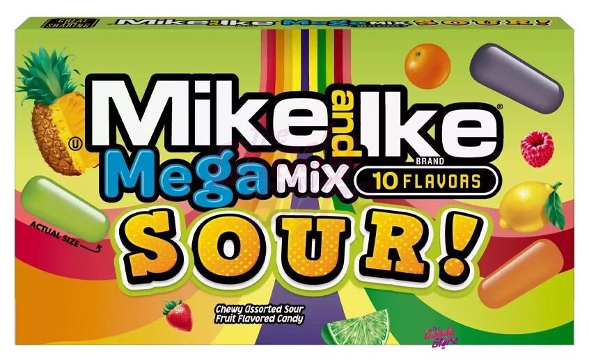 Zažijte neopakovatelnou kyselou jízdu s ovocnými žvýkacími bonbonky Mike and Ike! Stačí otevřít krabičku a vybrat si z deseti různých, super kyselých příchutí :)