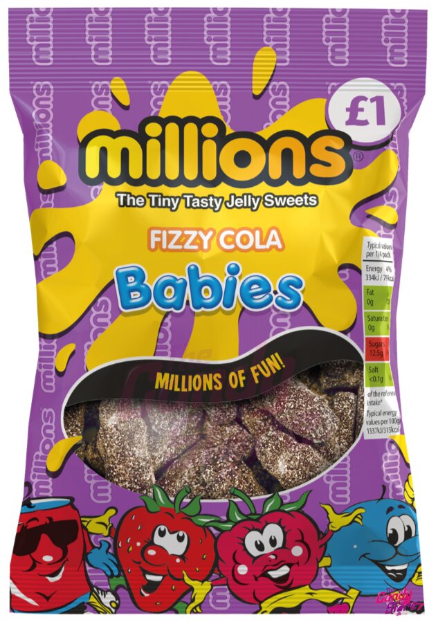 Cukr, glukózový sirup, pitná voda, kukuřičný škrob, želírovací látka: želatina; kyseliny: kyselina citronová, kyselina jablečná; aromata, regulátory kyselosti: uhličitany sodné; barvivo: karamel.