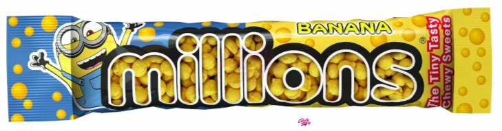 Cukr, glukózový sirup, kokosový olej, banánová šťáva z koncentrátu, potravinářský škrob, kakaové máslo, kyseliny: kyselina citronová, kyselina jablečná; aromata, maltodextrin, zahušťovadla: guma gellan, celulózy, arabská guma; emulgátory: estery sacharózy s mastnými kyselinami; barvivo: karoteny.
