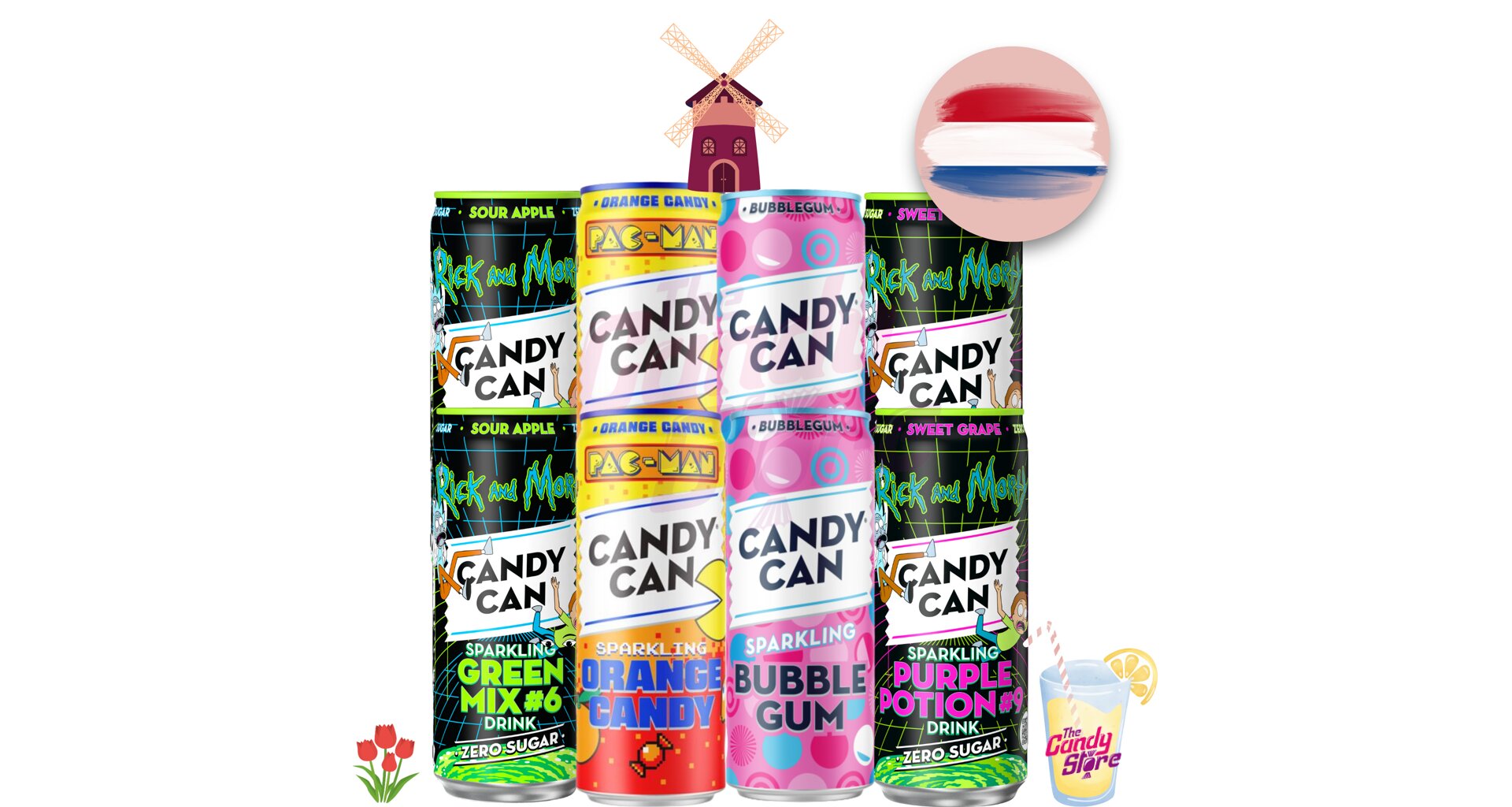 - 2x Candy Can x PAC-MAN sycená limonáda s cukry a sladidly s příchutí pomeranče, maliny a ananasu 330 ml
