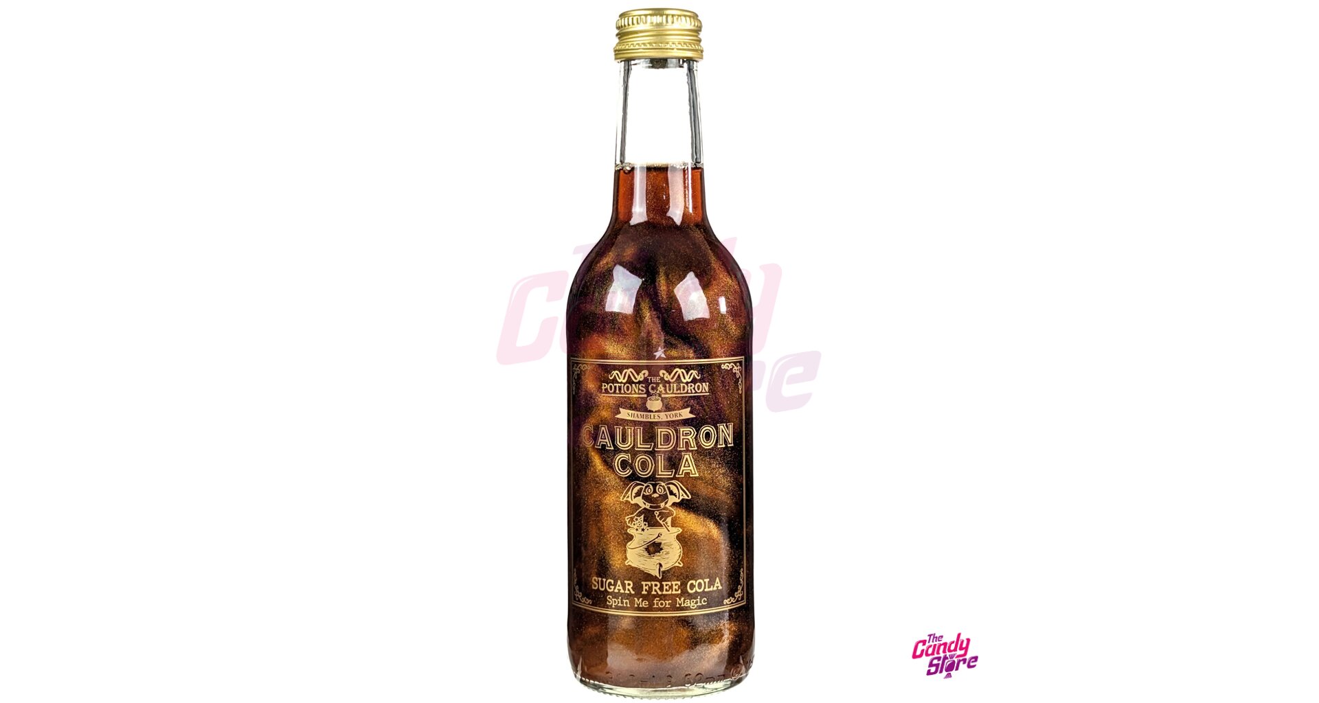 Potionsm Cauldron Cola. To je třpytivá limča bez cukru, která v sobě ukrývá klasickou chuť coly s magickým twistem. Ideální jako doplněk k tematickým večírkům.