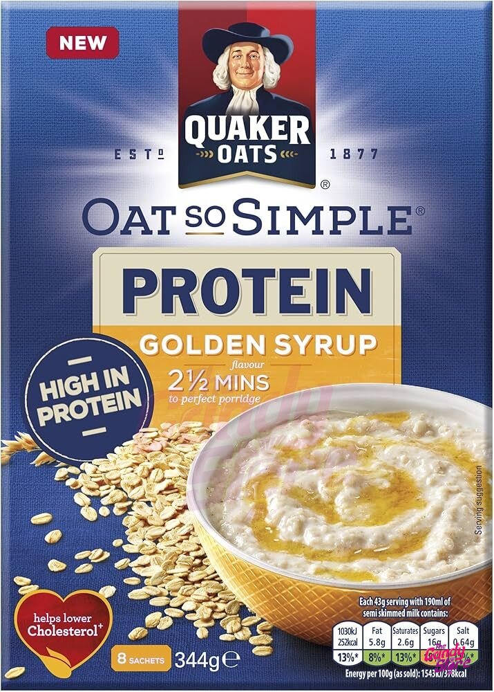 Quaker Oats ovesná kaše s příchutí světlé melasy se zvýšeným obsahem proteinu 8 x 43 g