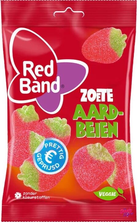 Vychutnejte si osvěžující chuť těchto lahodných žvýkacích bonbonů ve tvaru jahůdek od značky Red Band s ovocnými příchutěmi.