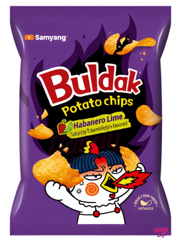 Brambory, palmový olej, koření Buldak Habanero Lime: cukr, dextrin, jedlá sůl, regulátor kyseliny: kyselina citronová; rajčatový prášek, látka zvýrazňující chuť a vůni: L-glutaman sodný; cibulový prášek, kukuřičný sirup, koření, maltodextrin, protispékavá látka: oxid křemičitý; kvasnicový extrakt, chilli prášek, česnekový prášek, sójový prášek, prášek z černého pepře, limetkové aroma, umělá aromata, slunečnicový olej, látky zvýrazňující chuť: inosinan disodný, guanylan sodný; citronové aroma, barvivo: paprikový extrakt; prášek z citronové šťávy, pšeničný lepek, stabilizátor: fosforečnan vápenatý; habanero papričky, regulátor kyselosti: kyselina jablečná; sezamový olej, sladidlo: steviol-glykosidy.