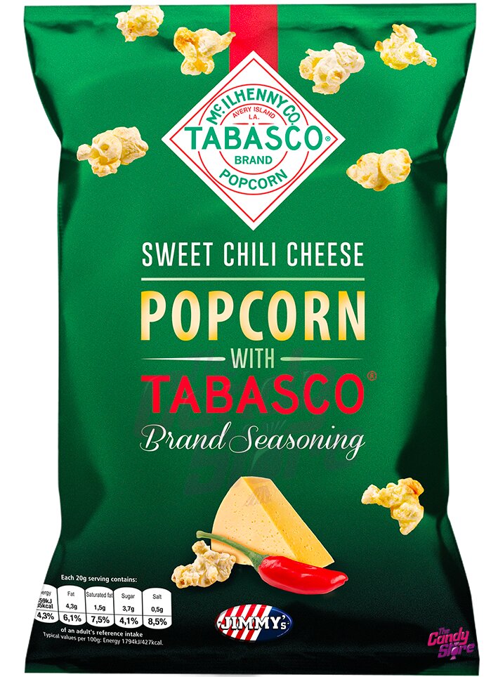 Vychutnejte si tento popkorn s příchutí Sweet Chili Cheese od populárního výrobce omáček Tabasco. Křupavý popkorn, který je ideální k filmovému večeru!