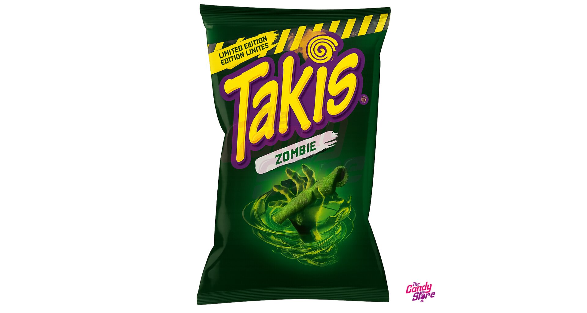 Takis Zombie! To jsou pikantní zelené kukuřičné tortilla chipsy s příchutí chilli a okurky. Pokud milujete vše pálivé, tak si tuto ohnivou smršť rozhodně nesmíte nechat ujít!