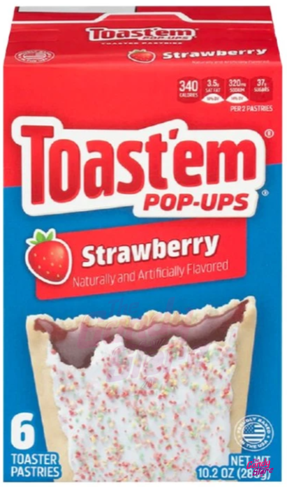 Obohacená pšeničná mouka: niacin, vitamín B1, vitamín B2, kyselina listová; kukuřičný sirup, cukr, glukózový sirup s vysokým obsahem fruktózy, palmový olej, řepkový olej, ovocné šťávy z koncentrátu: hrozny, jahody; kukuřičný škrob, sušená syrovátka: mléko; kukuřičná mouka, jedlá sůl, kypřící látky: uhličitany sodné, fosforečnan sodnohlinitý; barviva: Červeň Allura AC, Brilantní modř FCF; regulátor kyselosti: kyselina citronová, kyselina jablečná; přírodní a umělé aroma, konzervant: sorban draselný; želírující látka: želatina; sójový protein, vitamíny: vitamín A, vitamín B3, vitamín B6, vitamín B2, vitamín B1.