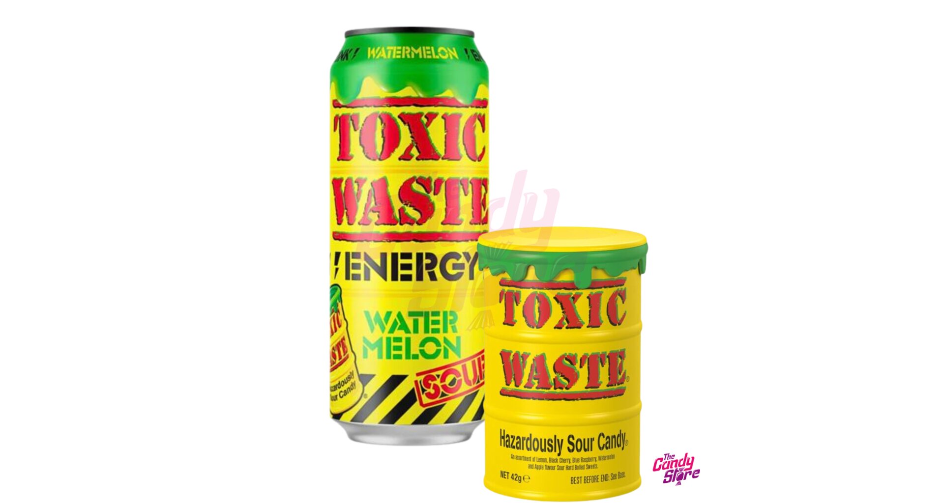 Vyzkoušejte náš super kyselý DUO Pack, který se skládá z Toxic Waste energetického nápoje s příchutí vodního melounu a Toxic Waste Yellow kyselých bonbonků.